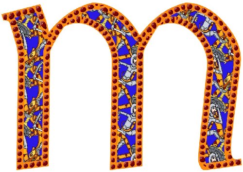 These decorated font samples were generated by software I developed for CISRA's Glorious Font project. Each sample started life as a True Type font outline which was then manipulated by various algorithms and stored in the more powerful Glorious Font format. The final results were rendered using CISRA's proprietary OpenPage graphics scripting language.
