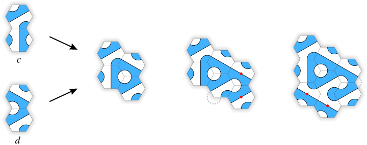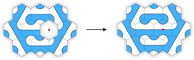 Single holes enclosed on all six sides, as shown in Figure 4, represent a special case. A player cannot place the first tile of their move in such a hole (unless that tile immediately wins the game) as it would then be impossible to place the second tile of the move adjacent to it.