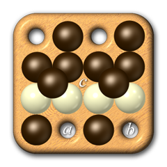 Spargo Puzzle #1 White to play. What is their best move and who will win? Solution: White should play a to win. This result is quite counterintuitive as Black has a strong group with two eyes, dominates most of the board, and outnumbers White's forces by more than 2:1. Proof: White has three legal moves: a, b and c (the top two empty holes would be illegal suicide moves). We consider each of these three options in turn. |