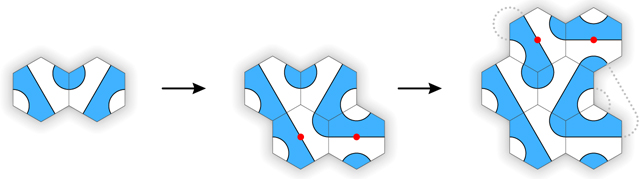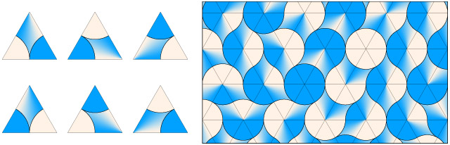 Figure 15. Three rotations of an arch tile and an arch tiling.