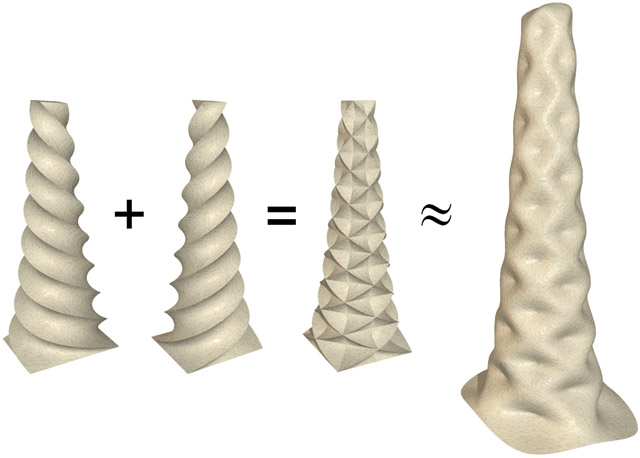 Figure 11. Two twisted columns combined and smoothed to approximate the shape of the Park Güell tower.