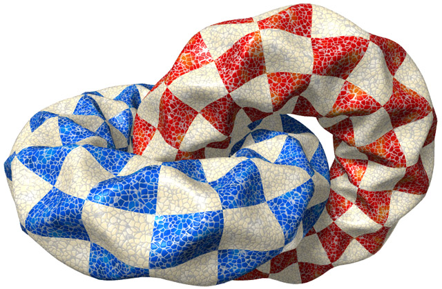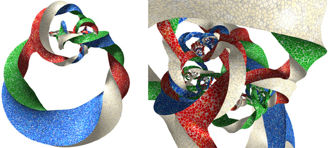 Figure 12. Two twisted, smoothed and tiled columns bent to form interlocking torii.