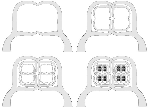 Figure 5. Increasing iteration depth: d = 1, d = 2, d = 3, and d = 9.