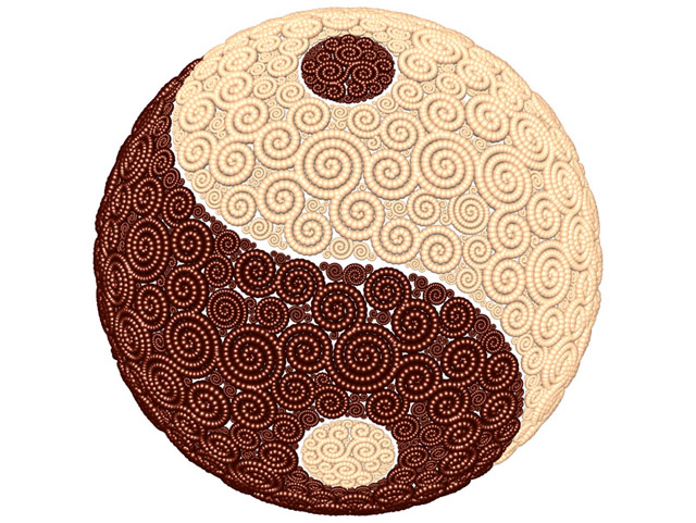 Figure 10. Four connected spiral sets exported as polyspheres mapped onto a hemisphere.